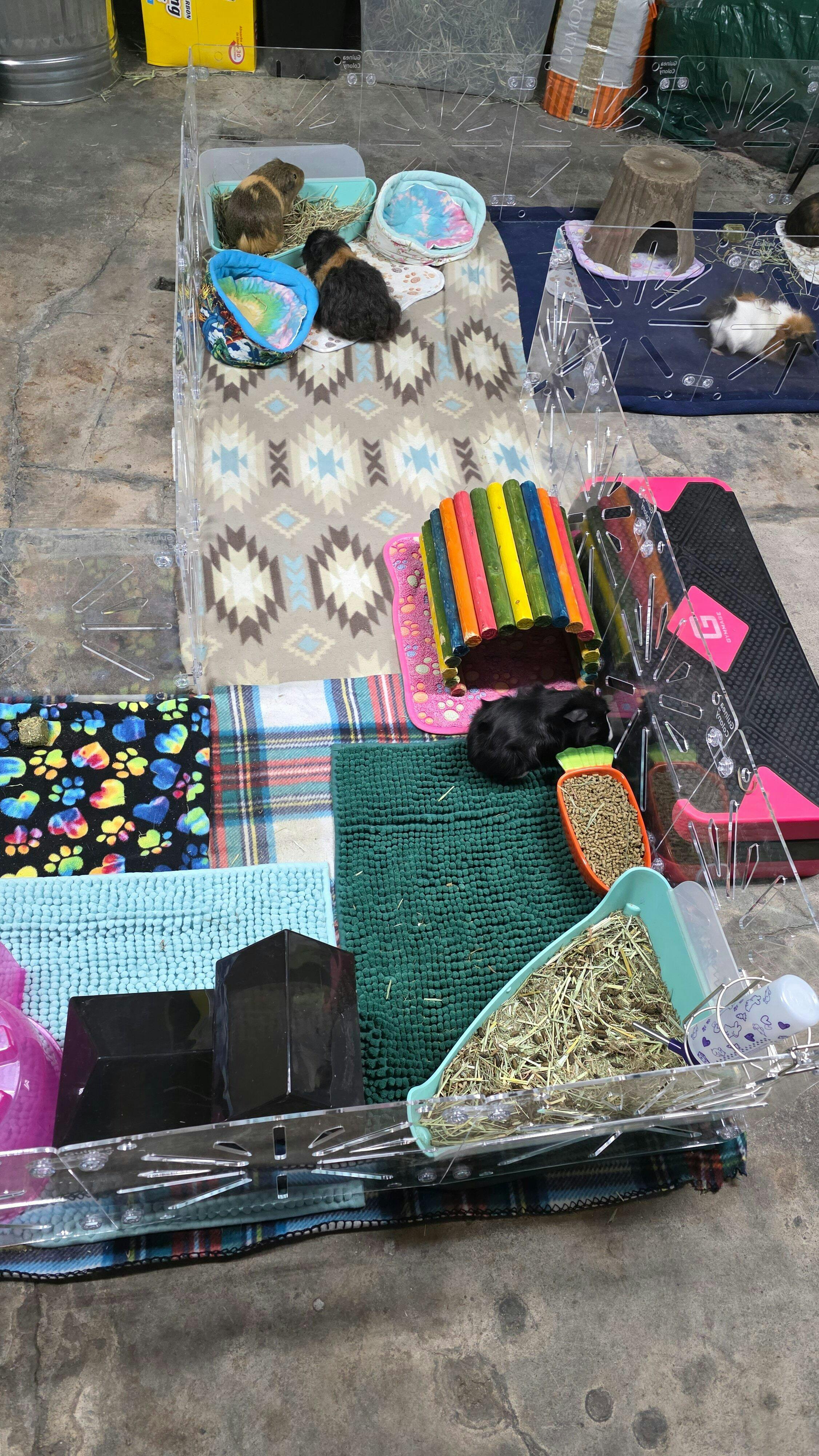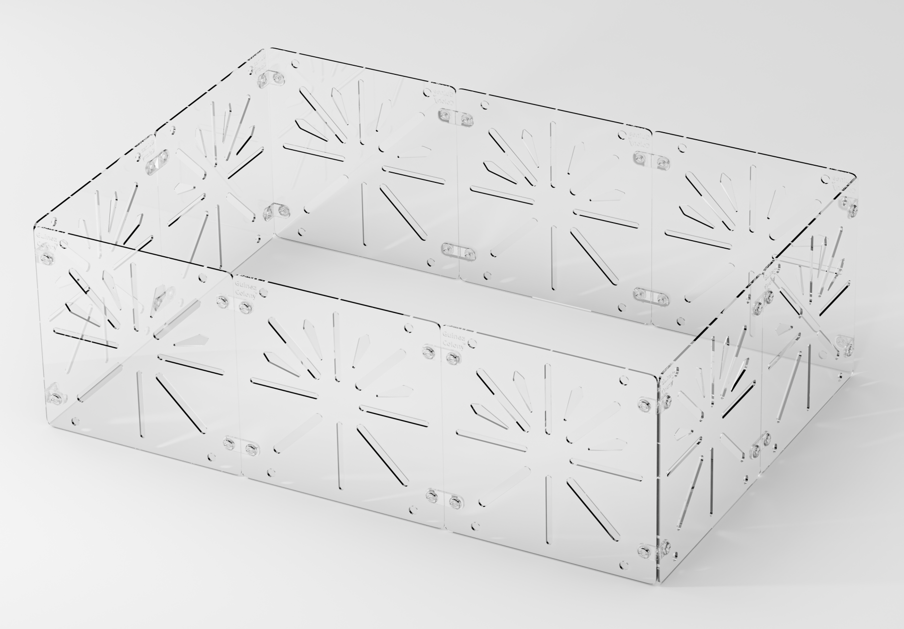 The tiles, connectors, and bolts are made from premium clear acrylic. The result is a durable, easy-to-clean habitat with a modern look and full visibility into your pigs’ daily antics.